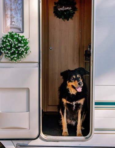 - Install a dog-proof door screen: This is handy when you want to keep the doors open for ventilation while keeping your dog safely inside. Many caravans already have mesh or flyscreens, but you can also invest in a doggy gate.
