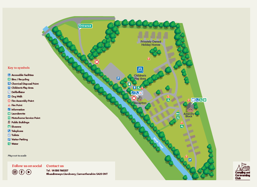 The campsite is situated in the middle of the valley and the lively River Towy run alongside it. The campsite is spacious and well set out with excellent facilities. Surrounded by hills and trees its ideal for families or individuals interested in walking, cycling or just relaxing.