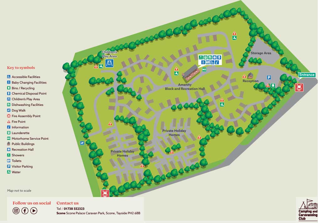 - Upon arrival, do not follow the SatNav. Instead, follow the brown tourist signs for Perth Racecourse and Caravan Site. The campsite is located within the racecourse grounds.